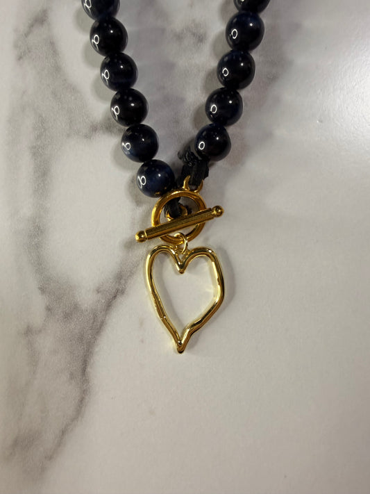 Black beaded heart necklace